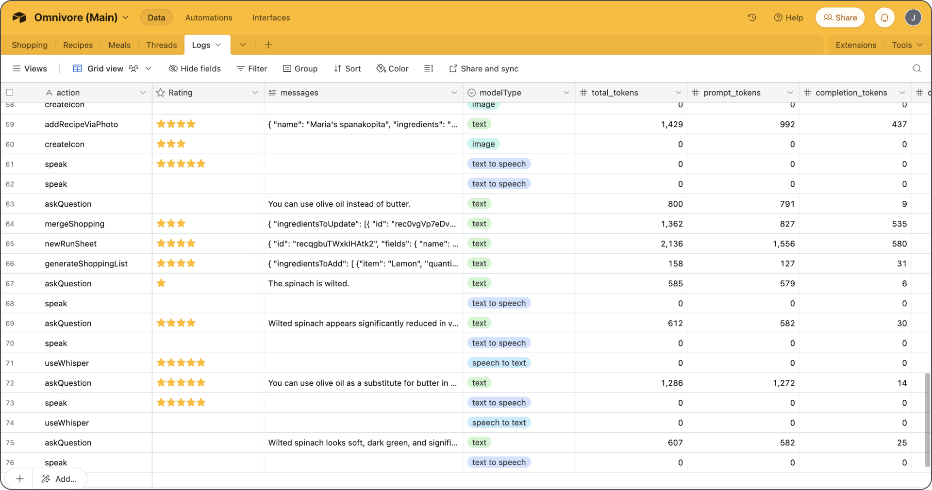 To achieve this in Omnivore we save each model request to Airtable as a Log that you can review. You can rate the Logs and leave comments in Airtable. This practice will help you self reflect, and you can build your judgment on the balance between value and cost.